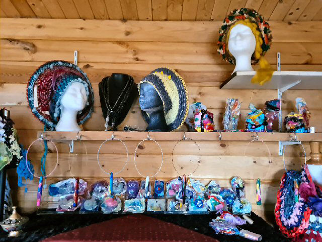 Van tekenen en schilderen stapte ze over op de textielkunst: handbeschilderde doeken van groot formaat voor aan de wand maar tevens geschikt om kleding van te maken of toe te passen als lijkwade. Ook hoeden en vloerkleden (doorsnee 80 tot 100 cm) behoren tot haar creaties. Te zien tijdens atelierroutes en in haar atelier.